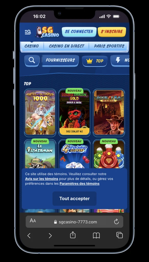 SG Casino application en ligne est entièrement optimisé pour le mobile, avec une interface responsive qui s’adapte parfaitement aux smartphones et tablettes. La navigation reste simple et rapide, que ce soit pour lancer une machine à sous, consulter le live casino ou accéder aux paris sportifs.