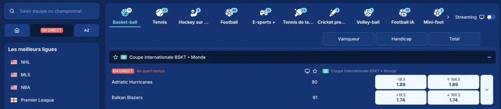 SG Casino dispose d’une section paris sportifs complète couvrant de nombreux sports (football, basket, tennis, eSports, etc.), des grandes compétitions internationales aux événements plus spécialisés, avec une navigation facilitée par des filtres intuitifs. Les joueurs peuvent miser en avant-match pour planifier leurs stratégies ou en direct pour parier en temps réel avec des cotes évolutives, sur des marchés variés comme le prochain but, le score exact ou le résultat à la mi-temps.